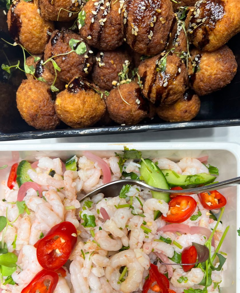 - Mausta pyörykkämassa tuoreella inkivääriraasteella, hienonnetulla korianterilla, pienellä tipalla seesamiöljyä, suolalla ja halutessasi chilillä. Muotoile massasta pieniä tiiviitä pyöreitä pyöryköitä.