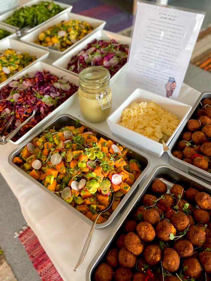 Reseptini ei ole kovin proteiinipitoinen, joten voit korjata asiaa lisäämällä hienonnettua tofua tai vaikkapa bean betterin fermentoitua härkäpapurouhetta. Panko- tai korppujauhot sitovat massaa, ja maizena sekä sitoo massaa, että antaa rapeaa paistopintaa pyöryköille. Raastetut kasvikset kannattaa kuullottaa pannulla ennen massaan lisäämistä, sillä niistä irtoaa melko paljon nestettä ja maku paranee pannulla pyöräytellessä. Kokeile rohkeasti erilaisia makukombinaatioita ja kehittele oma suosikkisi.